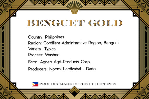 Born from the rich highlands of Benguet, this coffee is a true treasure of the Cordilleras. Benguet Gold reflects the region’s proud heritage of co...