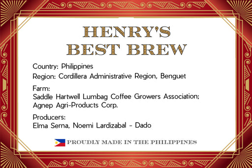 Crafted by our master artisans to bring out the best flavors of three single origin coffees, Henry and Sons' new creation, Sustanable.ph Blend is a harmoniums marriage of complex, light , and clean notes with soothing and warm lingering finish perfect for the Filipino palate.